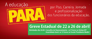 Os profissionais da Educação Nacional e Estadual paralisaram seus trabalhos na semana do dia 22 a 26 de abril, a categoria realizou atos públicos em todo Brasil, inclusive Cuiabá e diversas cidades do estado. Em Porto Alegre do Norte houve uma manifestação pública no dia 26 de abril no Fórum Político da 5ª dinâmica de empreendimentos e empreendedores em que estiveram presentes o Governador Silval Barbosa, seu vice Francisco Daltro, senadores e deputados, prefeitos, vereadores, empresários de diversos municípios, participaram do movimento representantes da categoria de nosso município, Vila Rica, Confresa, Canabrava do Norte. Entre as reivindicações da Categoria nessa greve estavam: